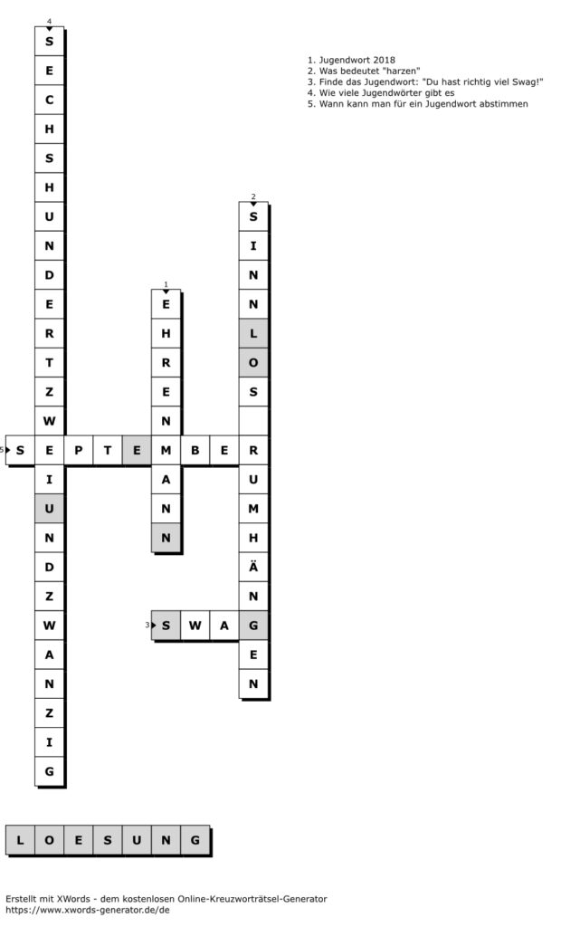 Doch damit ist die Herausforderung noch nicht vorbei. Wisst ihr noch, welches Wort 2018 ganz oben stand? Oder was genau der Ausdruck „harzen“ bedeutet? Und vor allem: Wie viele Jugendwörter es inzwischen eigentlich gibt? Unser Rätsel kombiniert Wissen, Intuition und ein bisschen Recherche – perfekt für alle, die Lust auf eine kleine sprachliche Challenge haben.